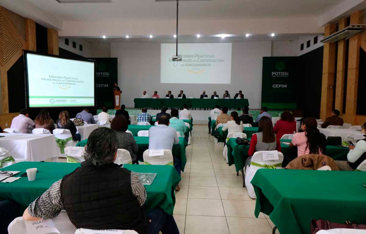 Más de mil 300 servidores públicos municipales depositaron su confianza en el Gobierno del cambio, a través de la Coordinación Estatal para el Fortalecimiento Institucional de los Municipios (CEFIM), para formar parte de una generación más de funcionarios certificados en los puestos que ocupan dentro de la estructura de un Gobierno municipal, como lo instruyó el Gobernador de San Luis Potosí, Ricardo Gallardo Cardona,