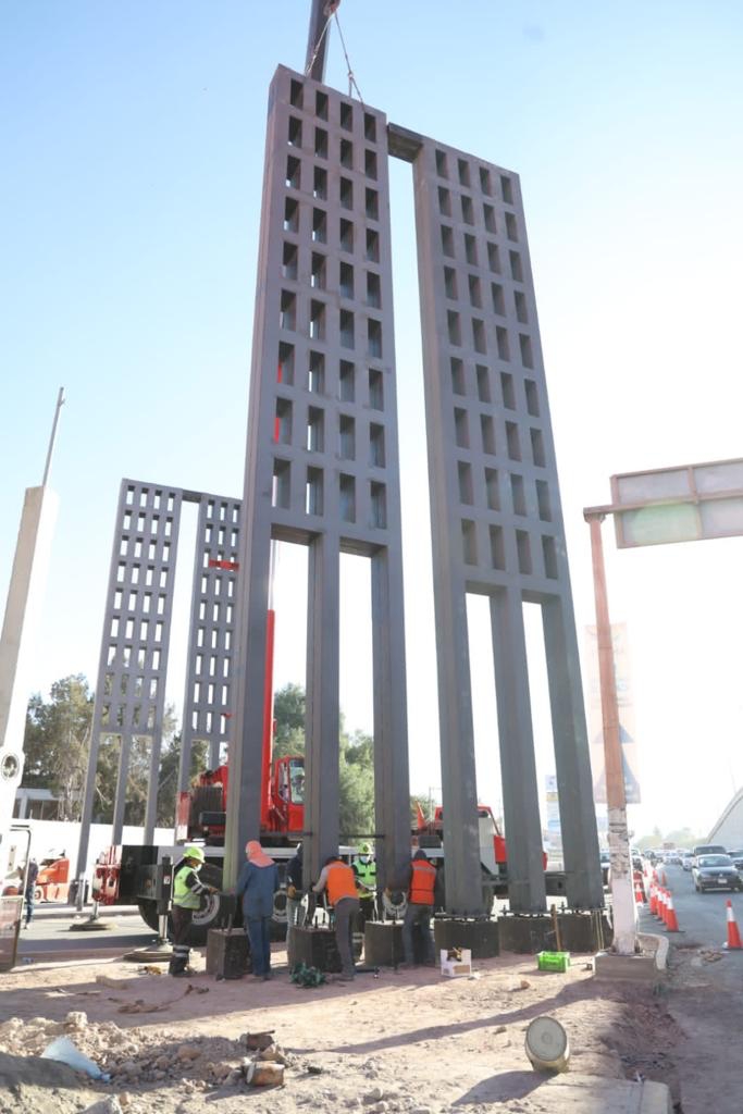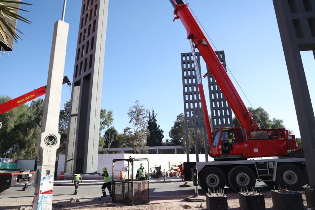 Se iniciaron las maniobras para la instalación de la monumental estructura que forma parte de la modernización del acceso por la calle Hidalgo