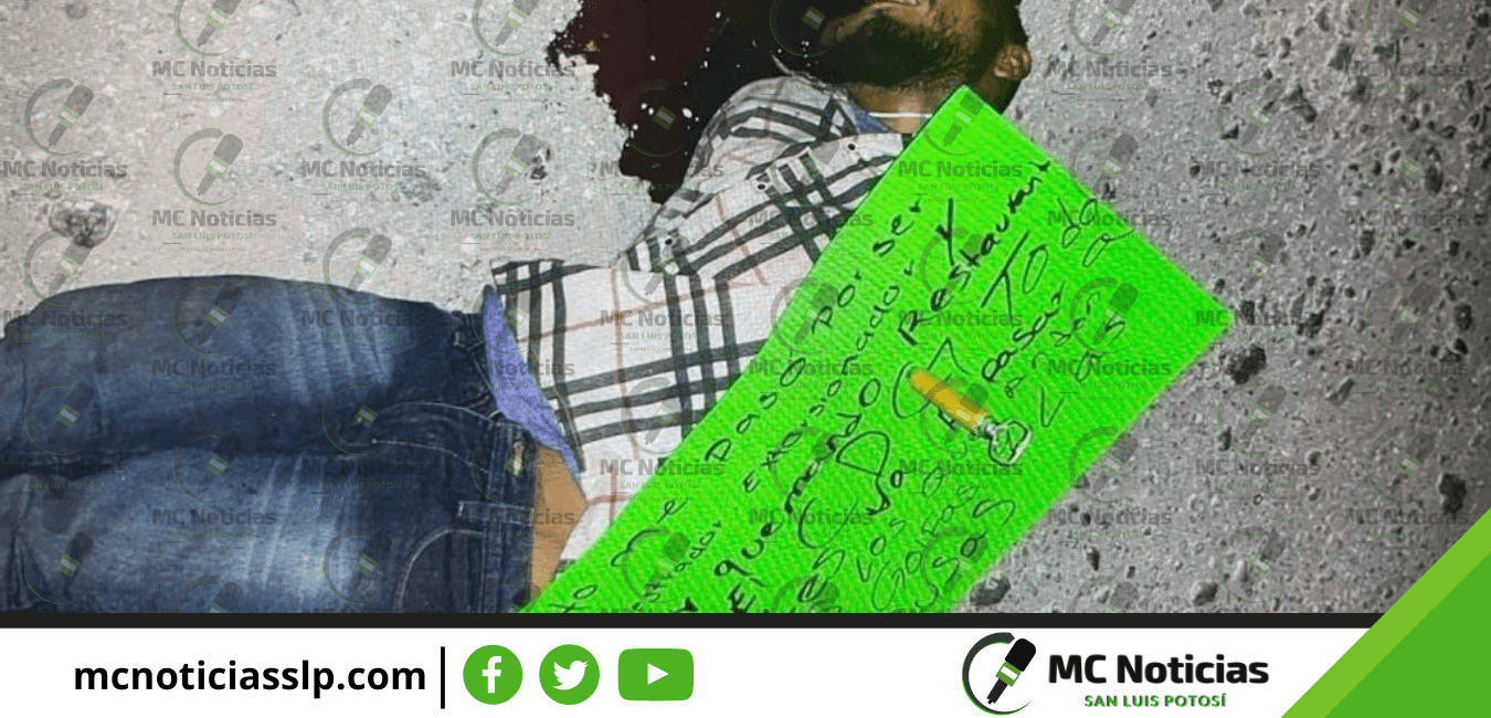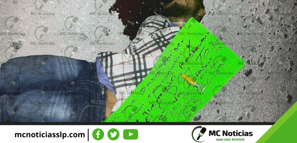 El occiso tenía clavado un pica hielo que sostenía un mensaje que comenzaba diciendo: “Esto me pasó por ser secuestrador extorsionador y andar quemando restaurant..”