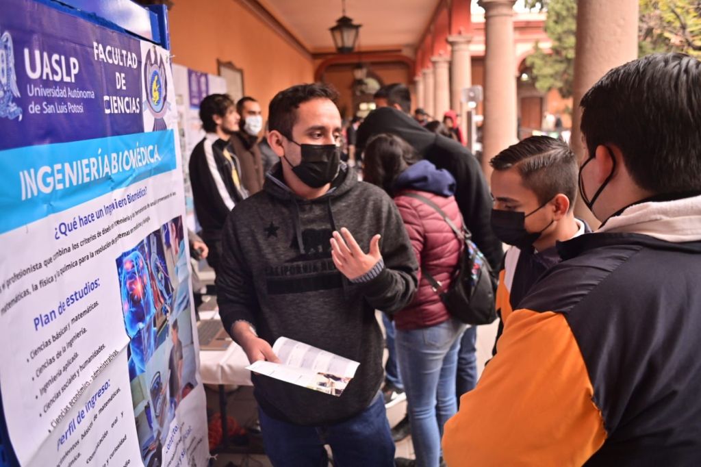 Puntualizó que la feria es de estudiantes para estudiantes, con el apoyo de consejeros alumnos, universitarios, docentes e investigadores, pues se ha visto que la comunicación entre pares es muy importante para que se aclaren dudas sobre las carreras.