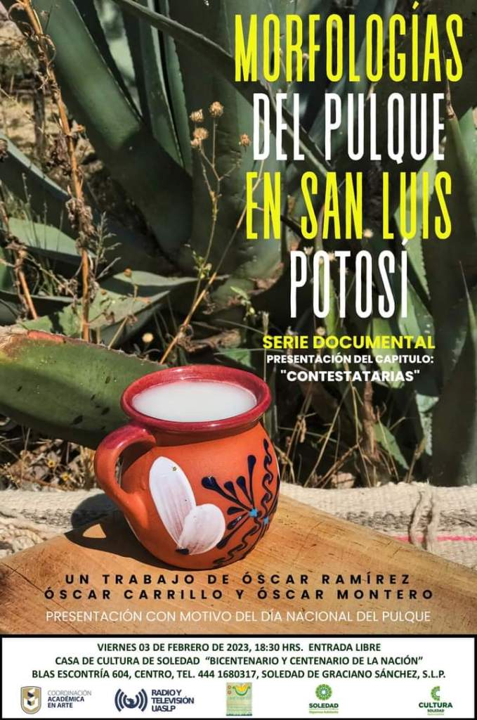 Roberto Mateo Posadas Martínez, señaló que las y los soledenses que asistan a celebrar el Día Nacional del Pulque, podrán disfrutar del “Combo Pulquero” que incluye no solo la interesante conferencia que será impartida por Gerardo Vela, si no, también el agradable documental denominado, “Morfologías del Pulque en San Luis Potosí”; un trabajo de Óscar Ramírez, Óscar Carrillo y Óscar Montero.