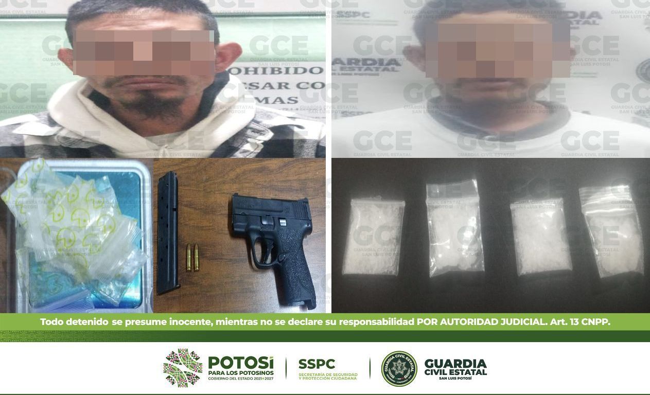 En el marco de las acciones contundentes por parte de la Guardia Civil Estatal, dirigidas a debilitar el fenómeno del narcomenudeo en la Entidad potosina y mediante labores de inteligencia, oficiales estatales lograron desmantelar un supuesto punto para la venta de sustancias nocivas para la salud, deteniendo a dos objetivos criminales generadores de violencia: uno de ellos portaba un arma de fuego.