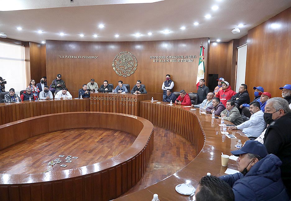 Los dirigentes de las distintas organizaciones de taxistas de San Luis Potosí, durante la reunión realizaron una serie de planteamientos con el fin de que los representantes de los Poderes tanto, Ejecutivo como Legislativo, intervengan en la solución a sus demandas en materia de transporte público (taxi) por lo que se firmó una minuta que contempla una serie de compromisos sobre el tema.