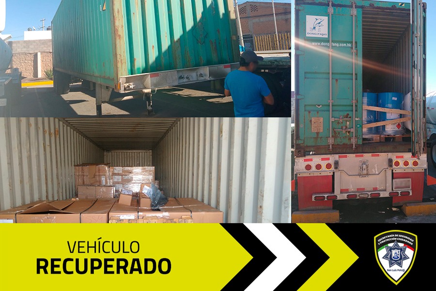 Como resultado de los patrullajes de vigilancia y seguridad de la Secretaría de Seguridad y Protección Ciudadana (SSPC) se llevó a cabo la recuperación, en diferentes hechos, de dos unidades que contaban con reporte de robo vigente. Una de las unidades –caja seca- fue recuperada aún con la mercancía.