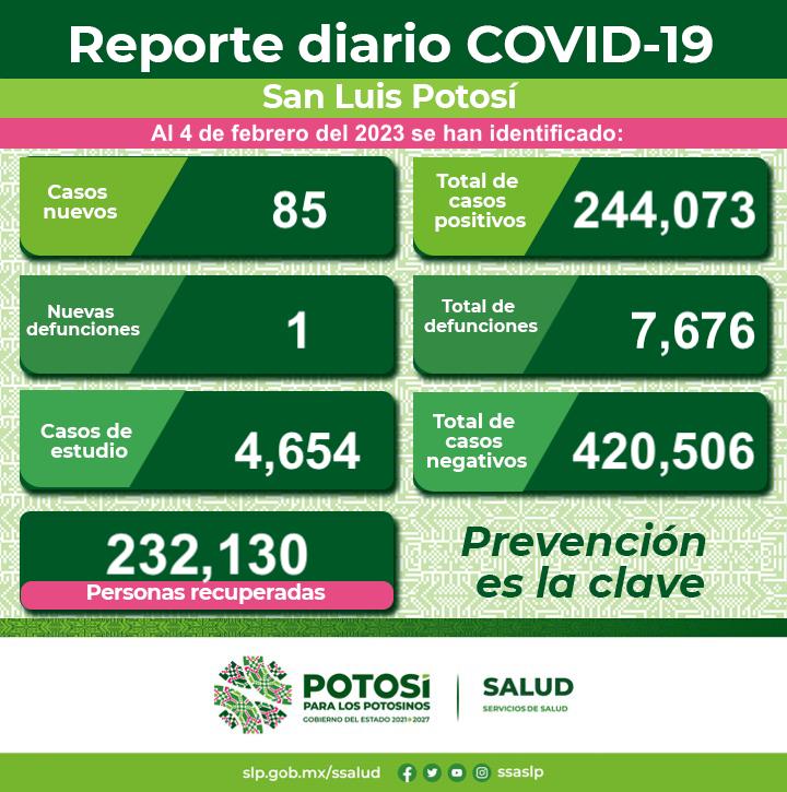 En cuanto a los casos Covid-19 en el Estado, se dan a conocer 85 nuevos contagios, confirmando el Comité Estatal para la Seguridad en Salud y los Servicios de Salud 244 mil 073 casos totales de esta enfermedad.