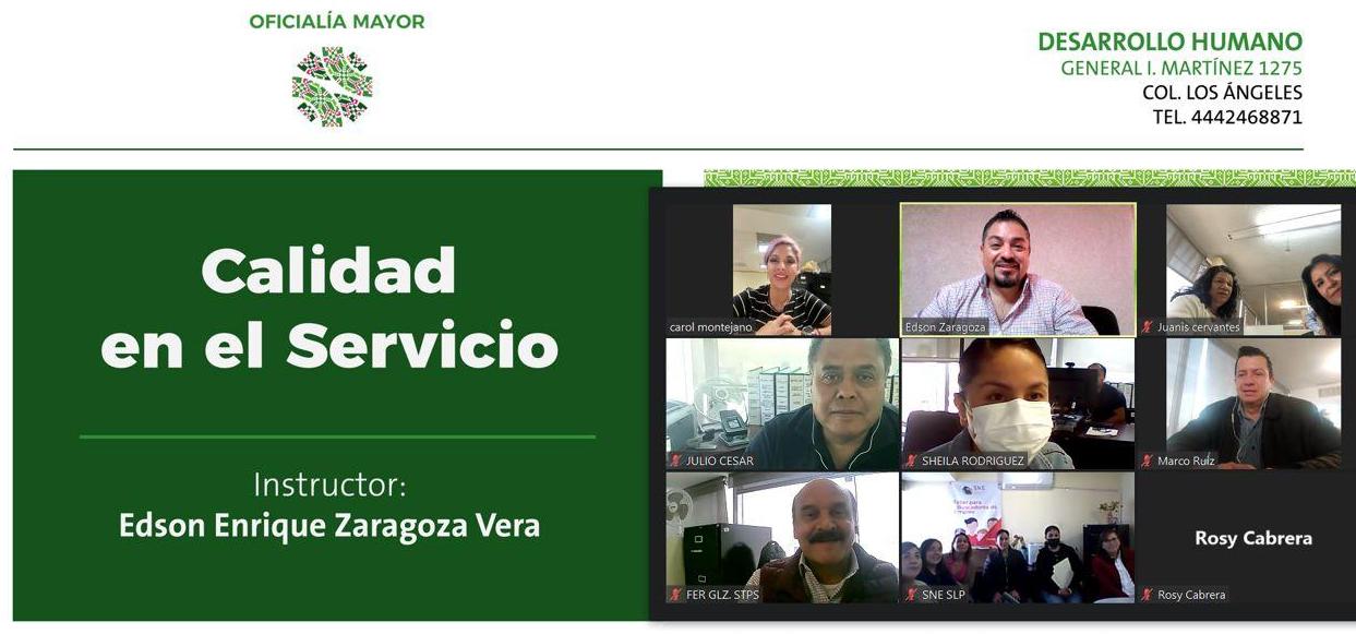 Para desarrollar competencias que contribuyan a las tareas organizacionales de forma participativa y democrática, adecuadas a los nuevos desafíos en la gestión pública, como lo ha instruido el Gobernador de San Luis Potosí, Ricardo Gallardo Cardona, la Oficialía Mayor del Ejecutivo, realizó con éxito el curso virtual “Calidad en el Servicio”, que ofreció al personal de la Secretaría del Trabajo y Previsión Social (STPS).