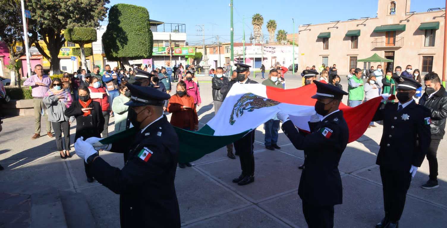 Autoridades municipales de Soledad de Graciano Sánchez conmemoraron el CVI Aniversario de la Constitución Política de México en un evento realizado este domingo cinco de febrero en la plaza principal de Soledad de Graciano Sánchez.