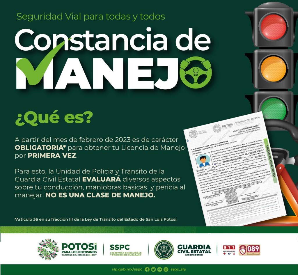 Debido a la importancia de fortalecer y concientizar entre ciudadanía y autoridades la aplicación de una verdadera cultura para la seguridad vial y evitar accidentes automovilísticos que dañen la salud y la vida de las personas, la Secretaría de Seguridad y Protección Ciudadana del Estado (SSPCE) informa el proceso a seguir para obtener la constancia de manejo, indispensable para tramitar la licencia de conducir, a partir de los próximos días.