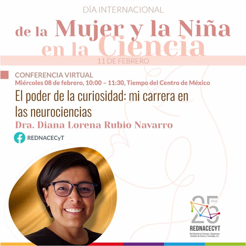 El 8 de febrero a las 10 horas (Tiempo del Centro), se presentará el poder de la curiosidad: mi carrera en las neurociencias, que impartirá Diana Lorena Rubio Navarro, reconocida dentro del top 10 de finalistas del Global Teacher Prize 2021 en asociación con la UNESCO y Fundación Verkey y ganadora del premio Docentes Extraordinarios: National Teacher Prize, México 2020, promovido por Movimiento STEM.