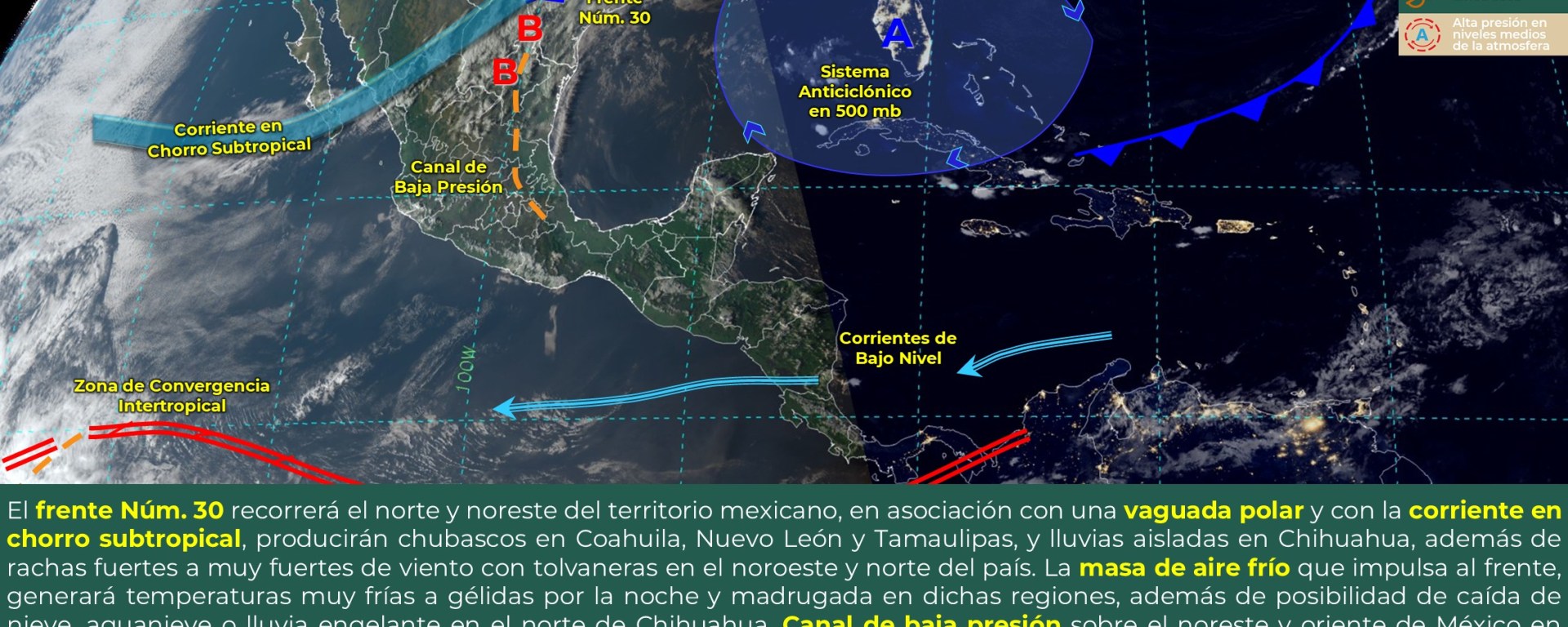 Evento de «Norte» con rachas de 60 a 70 km/h: Tamaulipas, Veracruz e Istmo y Golfo de Tehuantepec.
