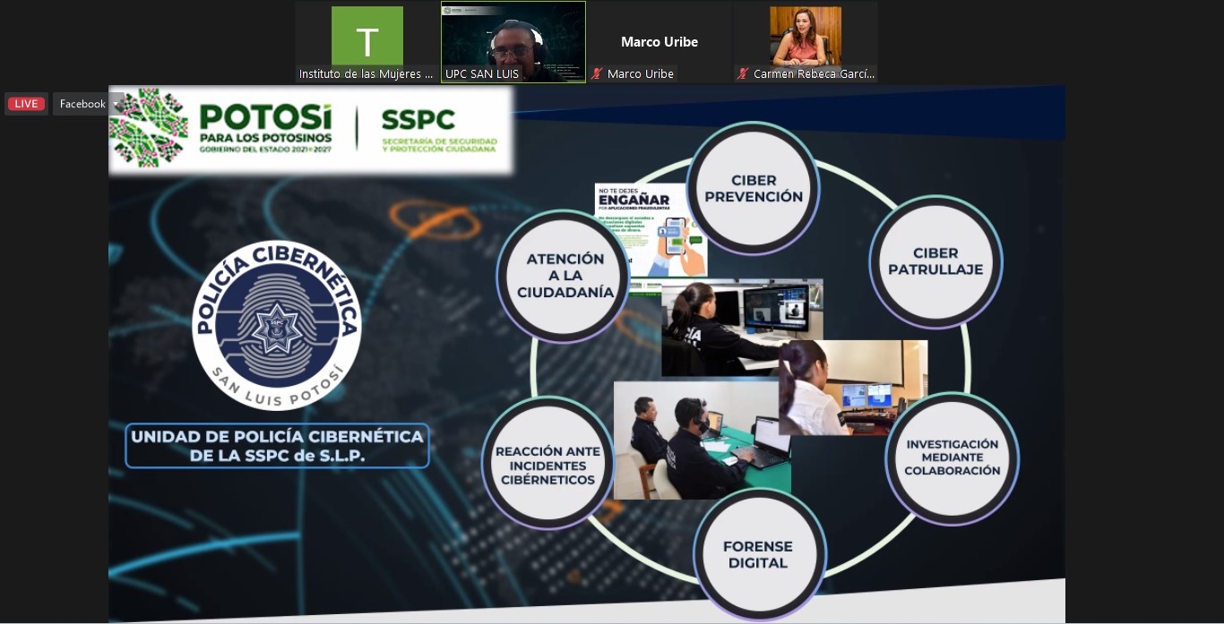 También participaron en esta videoconferencia, Arturo Ruiz Delgado, encargado de la Unidad de Policía Cibernética de la Dirección General de Tecnología de la Información e Inteligencia en Seguridad Pública y Héctor Daniel Islas Ferrer y Edgar Adrián Moncada Rodríguez, personal de la Policía Cibernética.