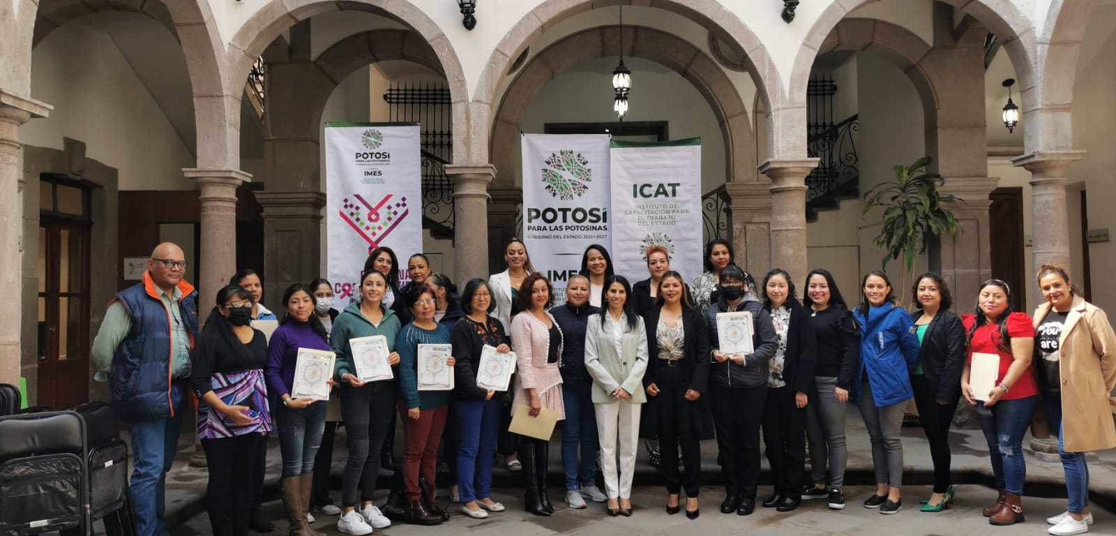 Como parte de las acciones emprendidas por el Gobierno del cambio que encabeza Ricardo Gallardo Cardona, para impulsar la formación y desarrollo profesional de las potosinas, el Instituto de Capacitación para el Trabajo (Icat) en coordinación con el Instituto de las Mujeres del Estado de San Luis Potosí (Imes), entregaron constancias y certificados para el Empoderamiento de las Mujeres Potosinas.