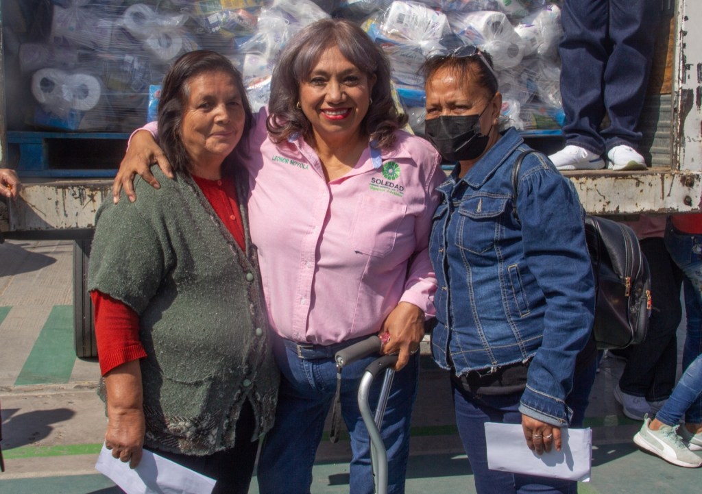 A fin de abonar a la economía de adultos mayores y contribuir a mejorar su nutrición, la alcaldesa de Soledad de Graciano Sánchez, Leonor Noyola Cervantes, en compañía de la Presidenta del Sistema Municipal DIF, María del Pilar Cardona Reyna, entregó apoyos alimentarios a personas de la tercera edad que radican en diferentes puntos de la localidad.