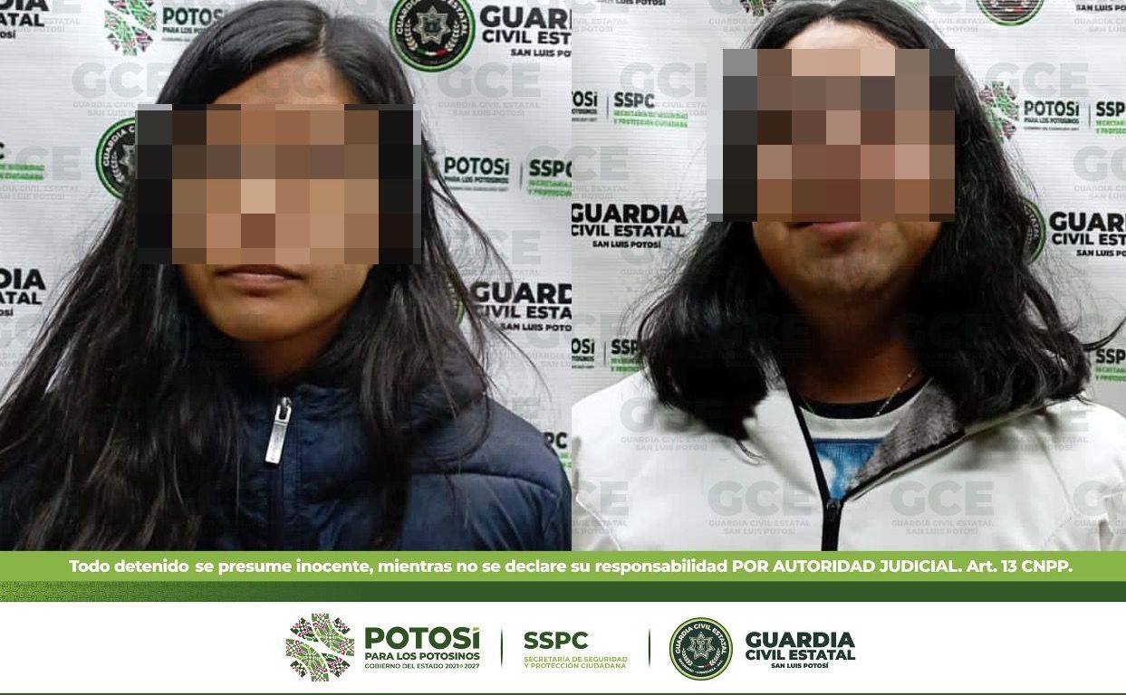 En uno de los casos, los agentes estatales se encontraban sobre la carretera a Zacatecas en la colonia San Angelín 2, cuando tuvieron a la vista a Perla de 27 años de edad, tripulando un automotor marca Seat, tipo Córdoba, modelo 2002, color blanco, sin placas, quien excedía el límite de velocidad permitido, por ello le indicaron que se detuviera. Al notificarle del presunto delito en el que incurría y del motivo por el que sería remitida ante las autoridades, el copiloto, de nombre Juan de 23 años de edad trató de obstruir la labor de los elementos de la GCE, por ello también fue detenido.
