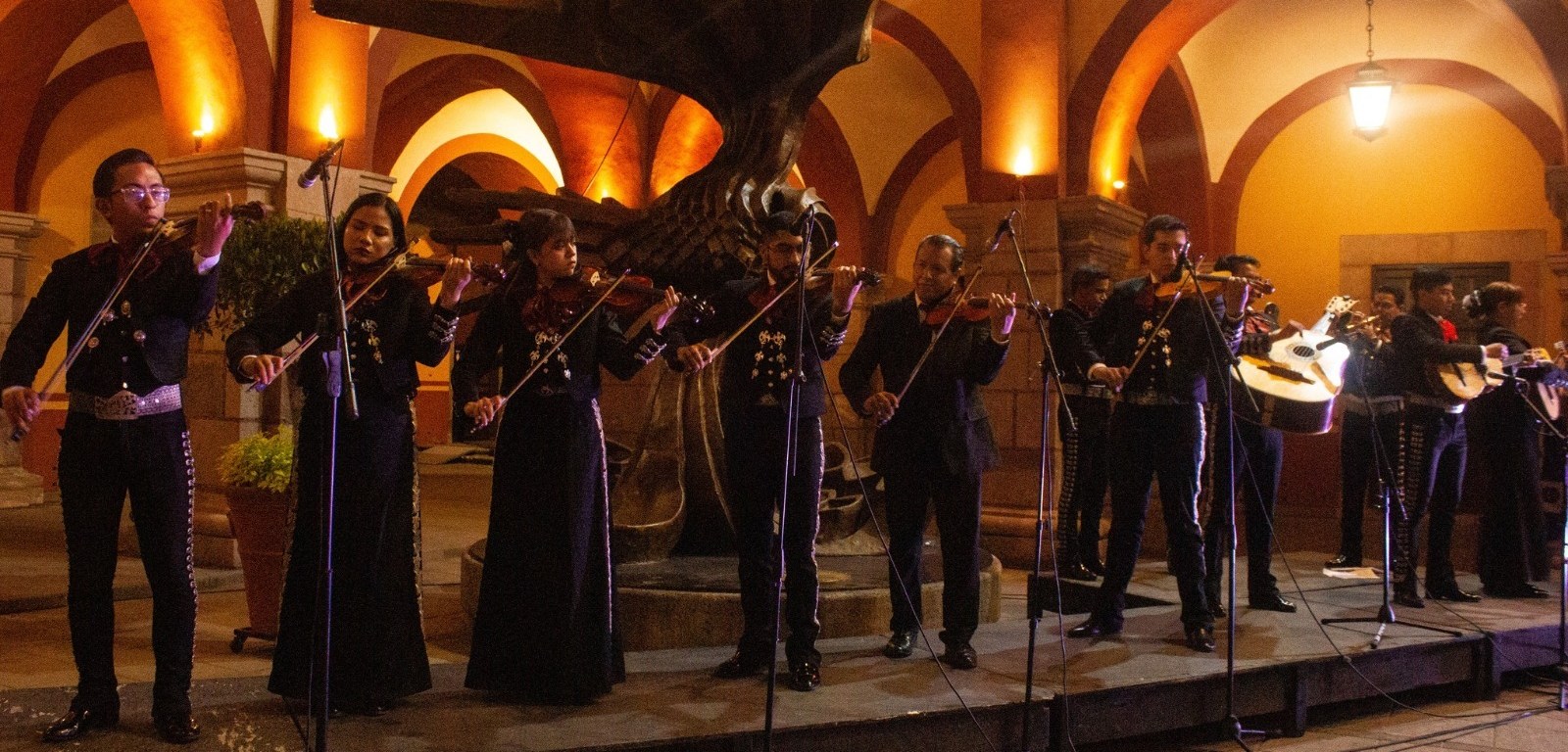 Al son de trompetas, violines, vihuelas y guitarrones, el Mariachi Universitario realizará un recorrido musical con canciones como “Sabes una cosa…” y “Me nace del corazón”, además de otras del dominio público, así como un popurrí de “Los Ángeles Azules”.