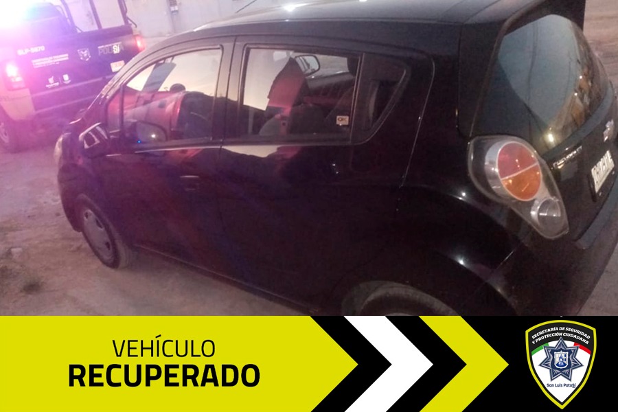 El segundo vehículo se recuperó en calle de la Delegación de Villa de Pozos, cuando los agentes circulaban sobre calle Venecia en la colonia Las Mercedes, ahí detectaron la presencia de un Chevrolet Sub Spark color negro, mismo que se encontraba en aparente estado de abandono.