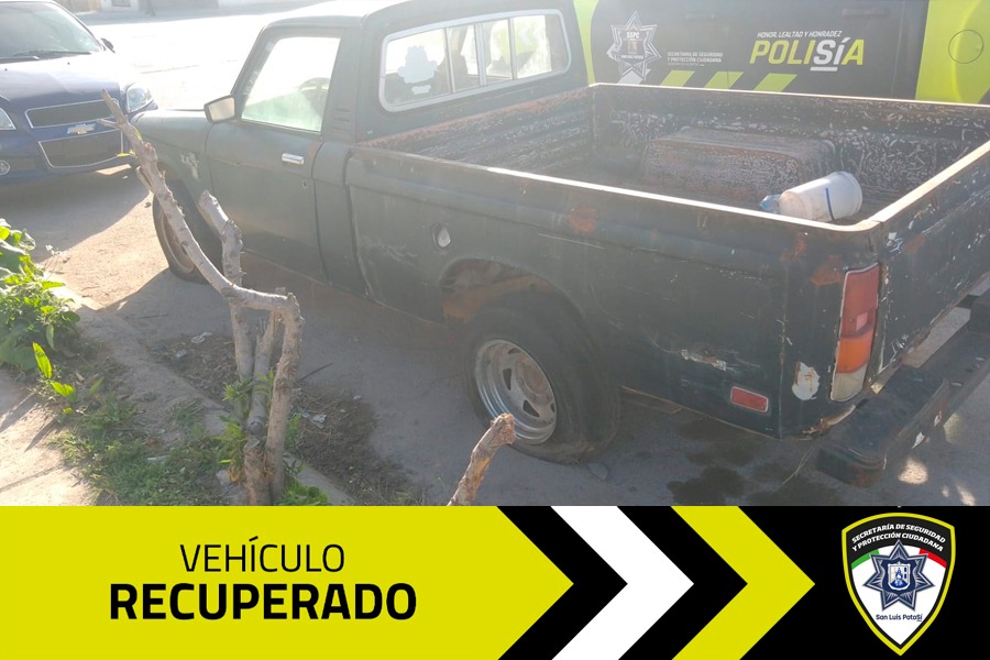 La primera unidad se localizó en el cuadrante norte, se trata de una camioneta tipo pick up marca Chevrolet color verde, misma que fue detectada en rondines de seguridad en la calle Vergel y contaba con huellas de desvalijamiento.