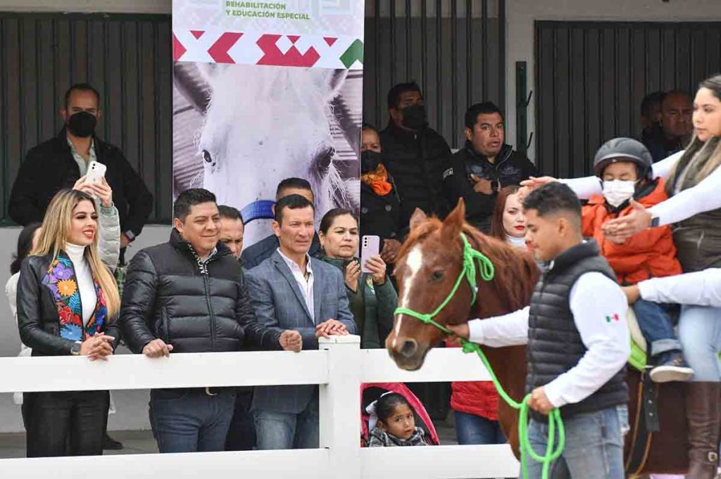 Gracias a la innovadora visión del Mandatario Estatal, se recuperó un espacio abandonado por la “herencia maldita”, y fue intervenido a través de la rehabilitación de caballerizas, luz eléctrica, áreas verdes, acondicionamiento de caballerizas, dotación de equipo de montura, bebederos, comederos, medicamentos y alimentos para caballo, equipo de Equinoterapia, suministro e instalación de luminarias, así como rampa para silla de ruedas y otras acciones complementarias.