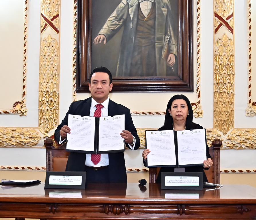 Para ello, el Poder Judicial dará acceso a estas tres dependencias estatales a un módulo especial del SICEE para compartir datos esenciales e intercambiar información para agilizar sus trámites y evitar filas. El convenio lo firmaron el secretario general de Gobierno, J. Guadalupe Torres Sánchez, y la magistrada presidenta del Poder Judicial del Estado, María Manuela García Cázares en la Sala Ponciano Arriaga de Palacio de Gobierno.