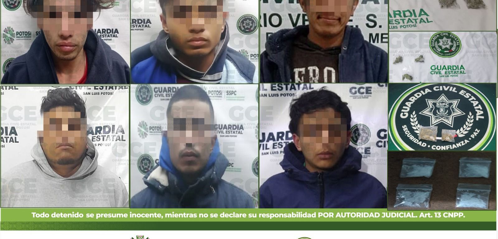 A su vez, en los municipios de Soledad de Graciano Sánchez y Matehuala, cuatro hombres fueron detenidos por la GCE: en el primero de los casos, los elementos patrullaban en la zona centro de Soledad, donde fue detenido Raúl de 20 años de edad con cuatro dosis de “cristal”; sobre la colonia Hogares Ferrocarrileros Segunda Sección, fue detenido Orlando de 25 años con tres dosis de “cristal”. En el municipio de Matehuala, sobre la colonia Altamira, los uniformados detuvieron a Kevin de 19 años con tres dosis de marihuana; en la zona centro del mismo municipio, fue detenido Juan de 32 años, con cinco dosis de marihuana.