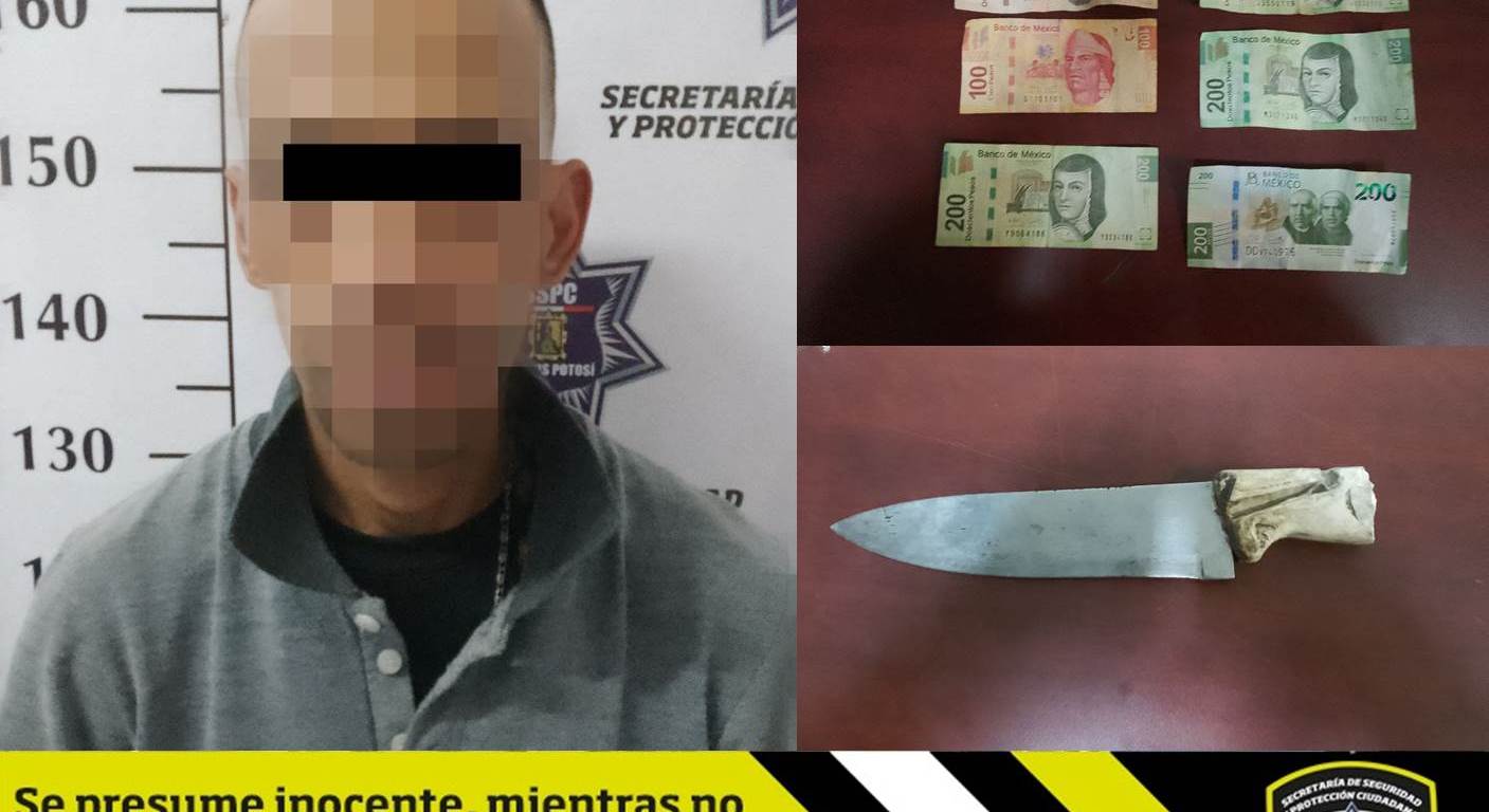 De esta manera, lograron ubicar al indiciado en la avenida Ricardo B. Anaya y calle San Sergio donde se le detuvo para realizar una revisión preventiva de seguridad, encontrando que portaba un cuchillo con 20 centímetros de hoja afilada en color gris, así como billetes de diferentes denominaciones. El implicado fue plenamente identificado por los encargados del comercio afectado.