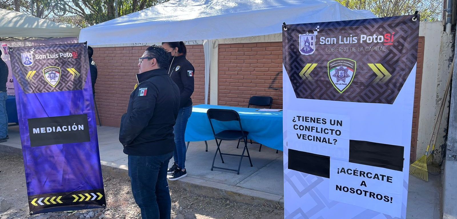 Durante la edición número 65 del Domingo de Pilas del Ayuntamiento de San Luis Potosí, el Comisario Juan Antonio Villa Gutiérrez, titular de la Secretaría de Seguridad y Protección Ciudadana Municipal (SSPC), anunció la incorporación de un Módulo de Mediación, donde las y los habitantes de las colonias podrán exponer las problemáticas de su entorno y recibirán asesoramiento para obtener una solución pacífica a los conflictos entre vecinos.