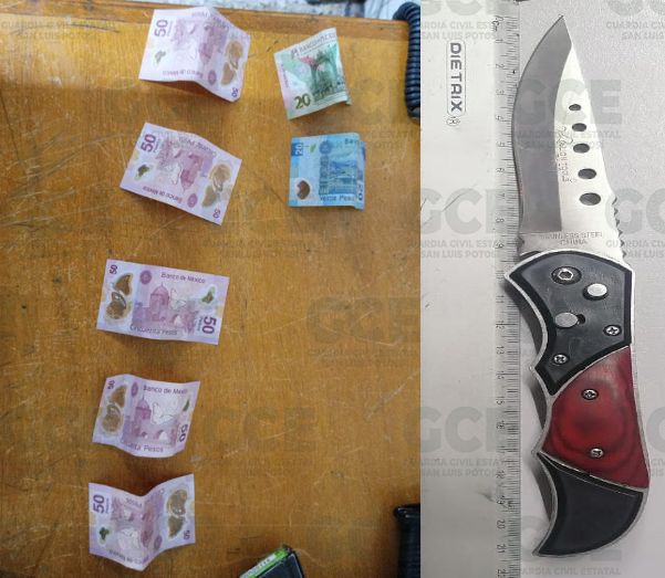 Al realizarle una inspección, a Raymundo de 60 años de edad se le aseguró una navaja de 21.5 centímetros, por lo que se le informó que sería remitido a las autoridades, sin embargo, para evitar su responsabilidad ofreció a los oficiales la cantidad de 290 pesos. El presunto también fue detenido por el delito de cohecho.