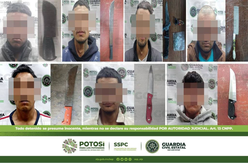 Durante los dispositivos de seguridad y vigilancia llevados a cabo en diferentes sectores de la ciudad, elementos de la Guardia Civil Estatal (GCE) detuvieron a 7 personas por el supuesto delito de portación de armas prohibidas.