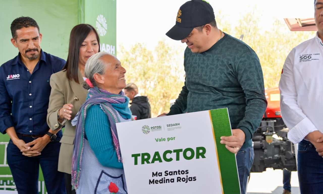 Al dar continuidad a este programa de rescate y fortalecimiento del campo potosino, el Mandatario Estatal entregó tractores, herramientas para labranza, como molinos, rastras, arados, sembradoras, aspersoras, remolques y motobombas, entre otros, a productores de Charcas, Vanegas y Venado, cuya alcaldesa y alcaldes, respectivamente agradecieron el respaldo del Jefe del Ejecutivo Estatal hacia la población de sus demarcaciones.
