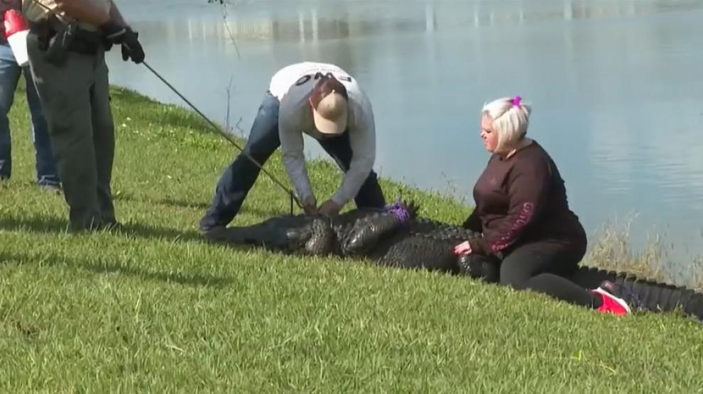 Las personas que vieron lo sucedido alertaron de inmediato a través la línea de emergencias 911. Dos horas más tarde, miembros de la Comisión de Pesca y Vida Silvestre de Florida (FWC) acudieron al sitio, lograron ubicar al depredador en el fondo del lago, lo sacaron y lo capturaron. Se calcula que el caimán medía entre tres y cuatro metros y pesaba entre 600 y 700 kilogramos.