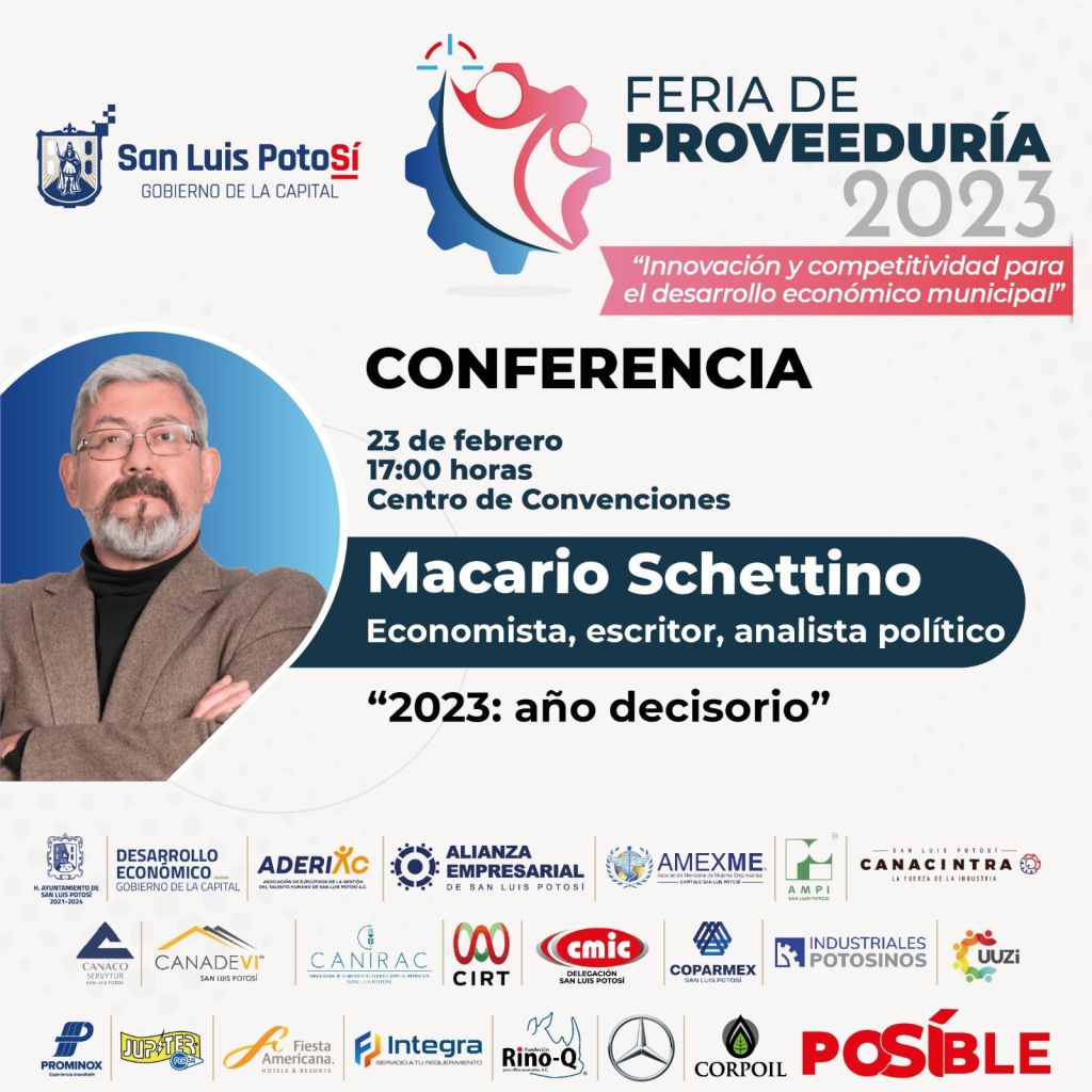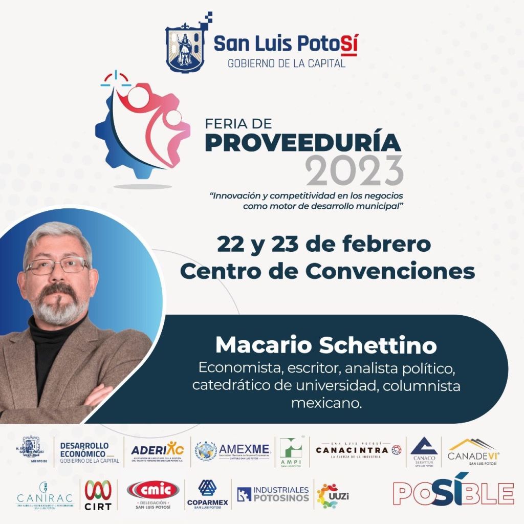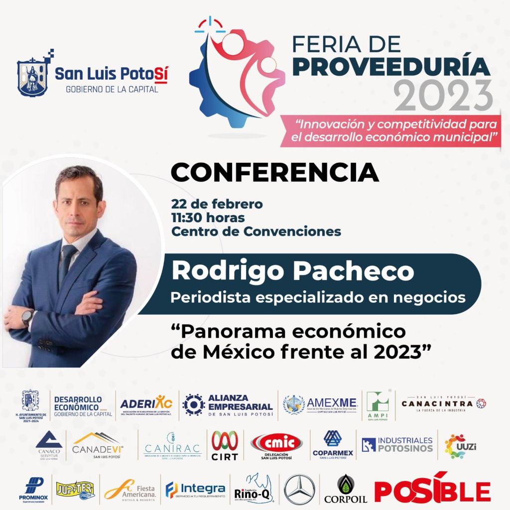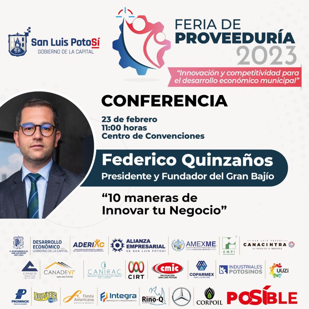 La Feria de la Proveeduría se realizará los días 22 y 23 de febrero de este año. Contará con talleres y conferencias a cargo de personalidades de los negocios como los comentaristas Maricarmen Cortés, Macario Schettino y Leo Zuckermann; así como el empresario Alejandro Kasuga y Federico Quinzaños, Presidente y Fundador de la comunidad empresarial El Gran Bajío.