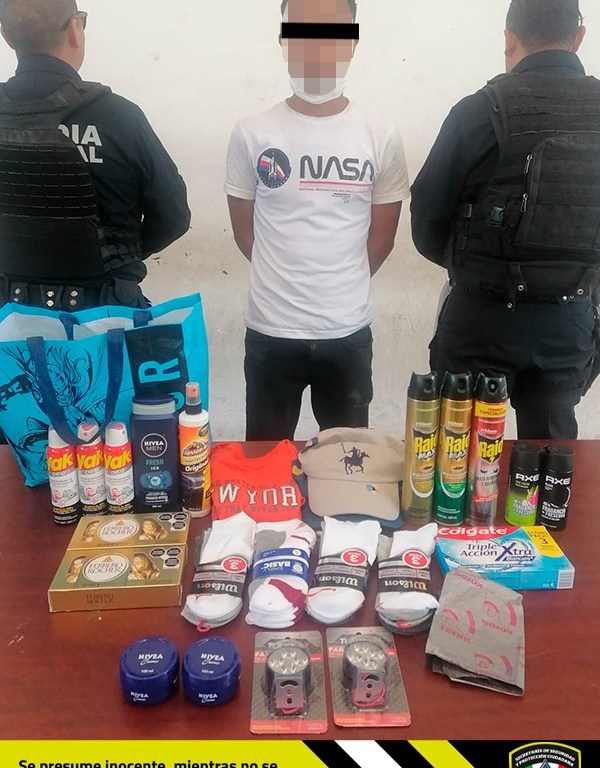 Personal de seguridad identificó plenamente al detenido, quien responde al nombre de Pedro “N” de 32 años. Al realizar el conteo de la mercancía sustraída se dio cuenta de varios productos de higiene personal, aseo y prendas de vestir con un total de mil 795 pesos.