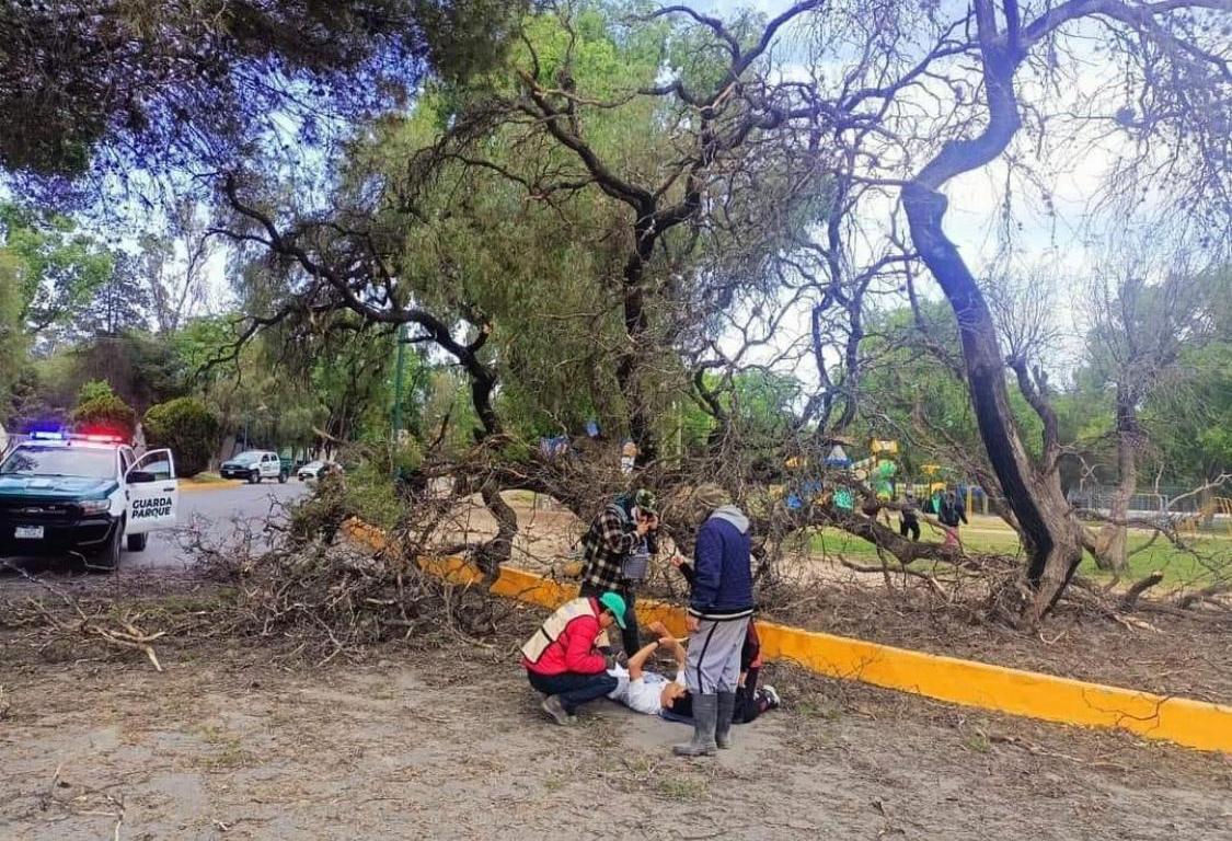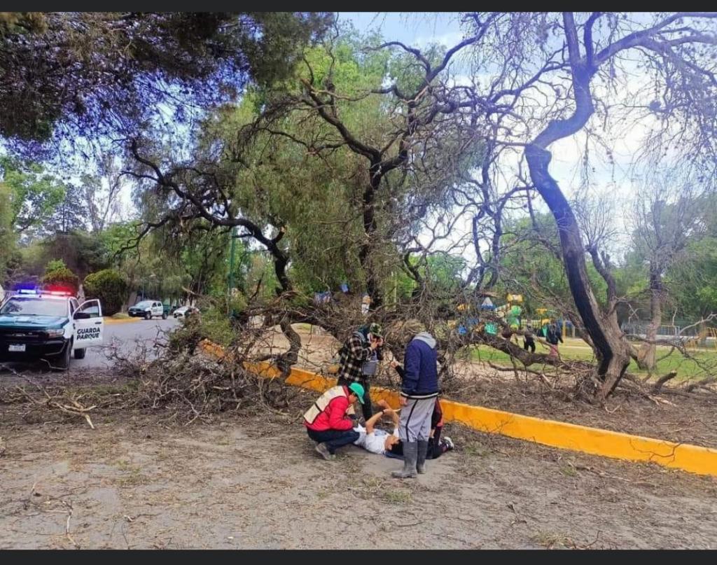 Personal de parque y de emergencia atendieron a un deportista que le cayo un árbol mientras realizaba su rutina diaria, el lesionado fue trasladado al hospital para una mejor revisión del percance.