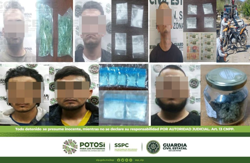 Mediante los trabajos operativos de prevención y disuasión de ilícitos en el territorio potosino, específicamente para disminuir el delito de narcomenudeo y el consumo de droga entre la población, agentes de la Guardia Civil Estatal (GCE) detuvieron a 18 personas por presunta posesión de estupefacientes.