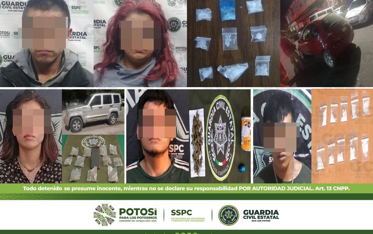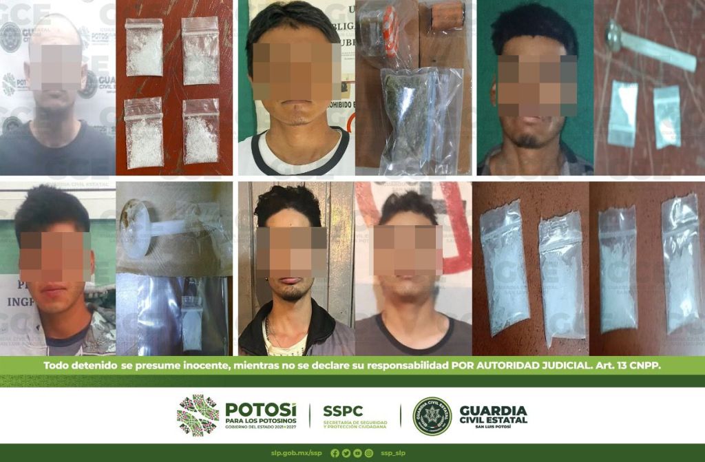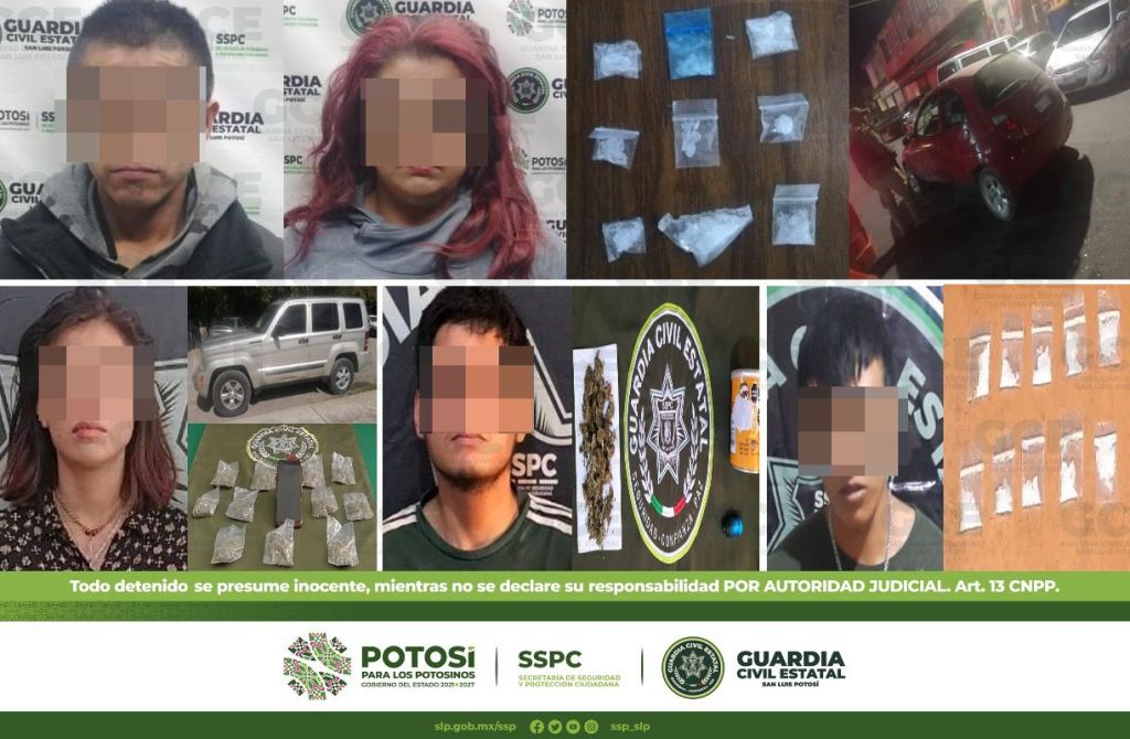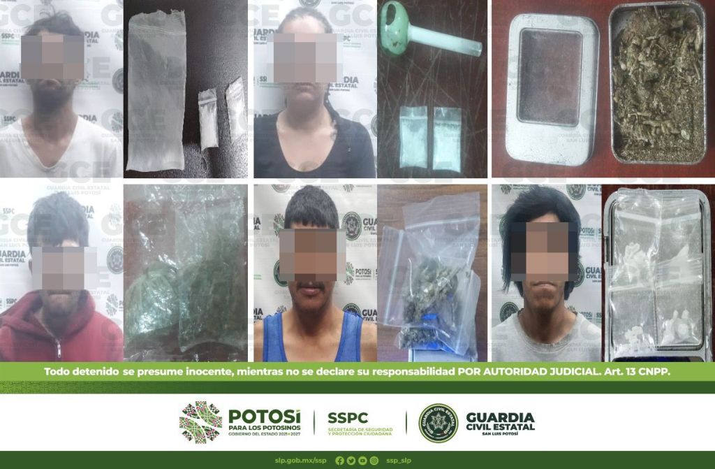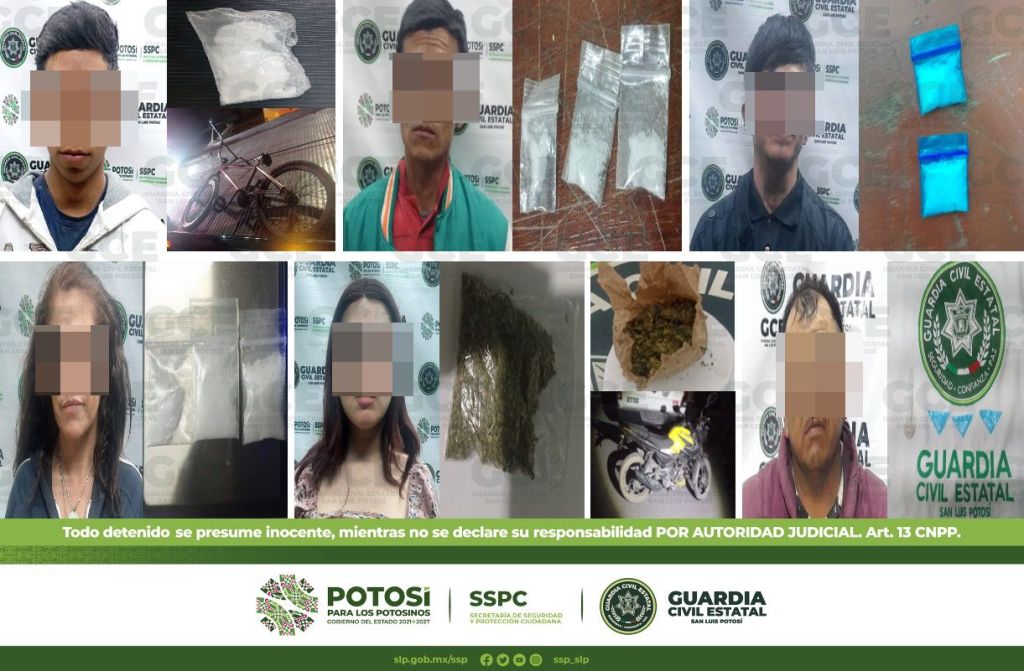 A su vez, en la colonia Ponciano Arriaga, Alejandro de 33 años, fue detenido con dos dosis de marihuana; dentro de los operativos en la colonia Los Alcatraces, fue detenida María de 33 años, con dos dosis de “cristal”; sobre la colonia Villas del Sol, fue detenido Erick de 39 años, con tres dosis de marihuana; otro de los hechos ocurrió en la colonia Satélite, fue detenido Jaime de 22 años, con una dosis de “cristal” y una bicicleta.