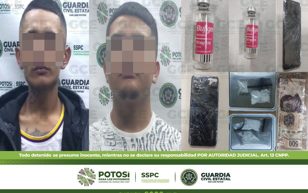 Derivado de estos hechos, los agentes estatales efectuaron la detención de José de 19 años de edad y de Orlando de 23 años, quienes quedaron a disposición de la Fiscalía General del Estado junto con lo asegurado.