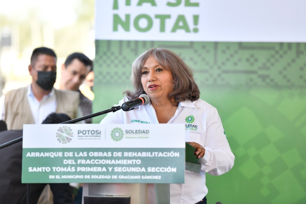 La alcaldesa de Soledad de Graciano Sánchez, Leonor Noyola Cervantes, continúa con las acciones para impulsar el desarrollo, la modernidad y el bienestar de las y los soledenses; por ello, este lunes, acompañada del Gobernador del Estado, Ricardo Gallardo Cardona, así como de integrantes del gabinete estatal, municipal, y de legisladores locales y federales, dio arranque a las obras de rehabilitación del fraccionamiento Santo Tomás Primera y Segunda sección, además de la construcción de un área recreativa en Ciudad Real.