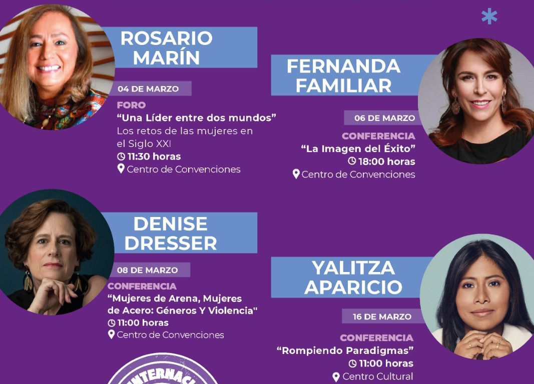 En el marco de la conmemoración del Día Internacional de la Mujer, el próximo 8 de marzo, el Gobierno de la Capital que encabeza el Alcalde Enrique Galindo, invita al ciclo de conferencias Juntas Somos Más Fuertes, en el que participarán mujeres que se han destacado a nivel nacional e internacional en diversos ámbitos y por sus esfuerzos en favor de los derechos humanos y del empoderamiento, como la periodista Denise Dresser, la conductora radiofónica Fernanda Familiar, la actriz Yalitza Aparicio y Rosario Marín, la mexicana de más alto rango en el gobierno de los Estados Unidos.