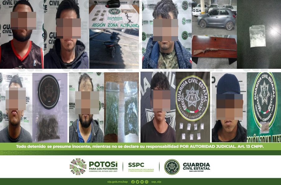 Como resultado de los operativos de seguridad y vigilancia para garantizar la paz y el orden público llevados a cabo por la Guardia Civil Estatal (GCE), 14 personas fueron detenidas por el probable delito de posesión de droga; tres de ellos considerados objetivos criminales.