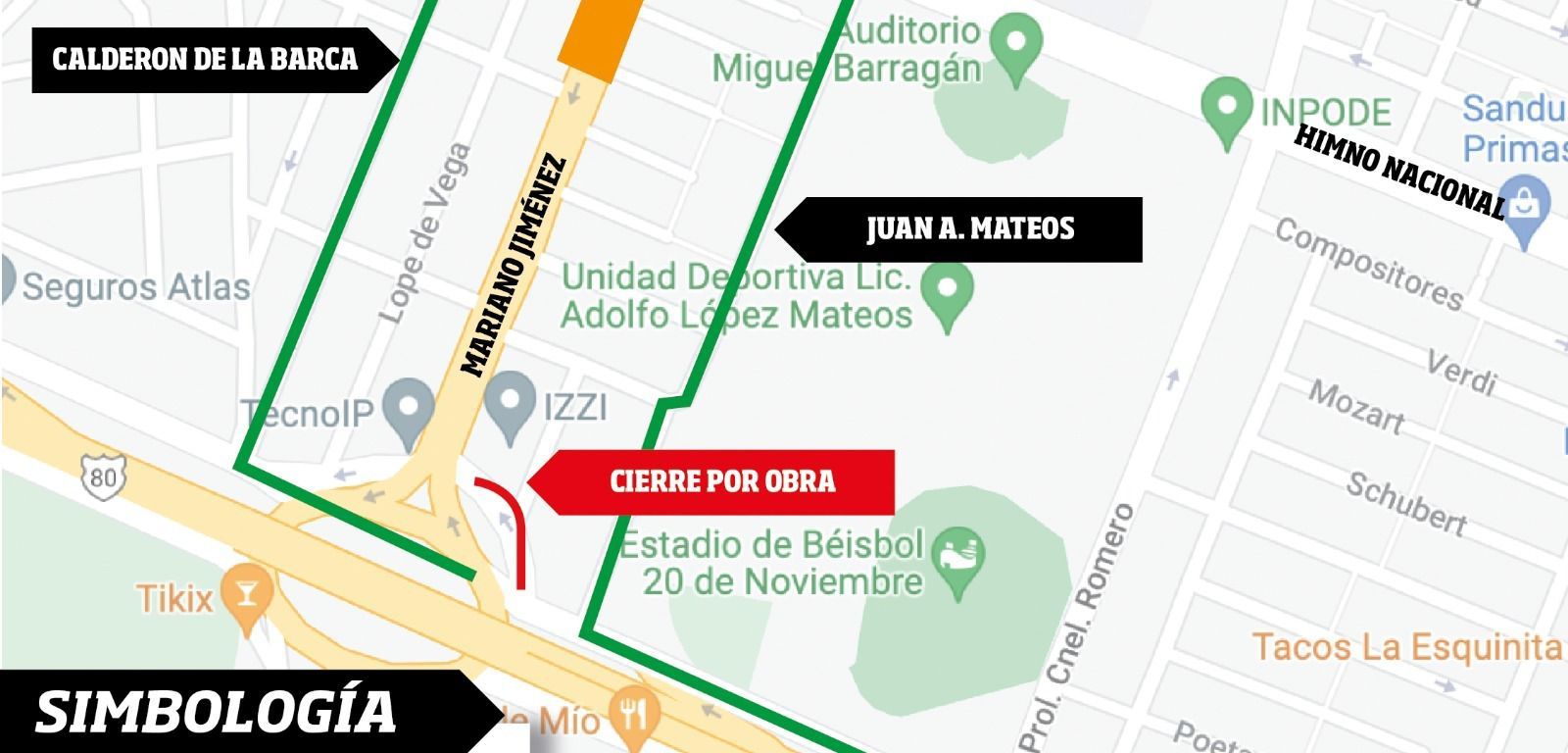 Se llevará a cabo el cierre de circulación temporal en los carriles de Mariano Jiménez, desde Salvador Nava con dirección a Himno Nacional.
