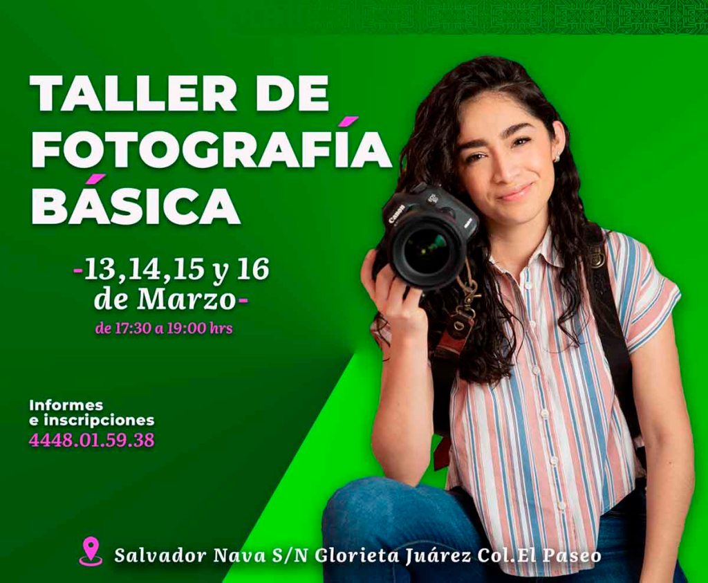 Para dar continuidad al compromiso con la juventud, como se ha impulsado desde el inicio del Gobierno del cambio encabezado por Ricardo Gallardo Cardona, el Instituto Potosino de la Juventud (Inpojuve), ofrecerá un taller de fotografía para todas y todos los jóvenes que comenzará el 13 de marzo, dando fin el 16 del mismo mes y año, con un cupo ilimitado.