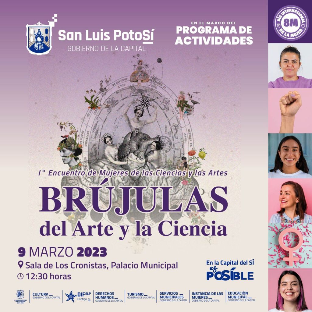 En el marco del Día Internacional de la Mujer, el Ayuntamiento de San Luis Potosí y el Comité Organizador del Primer Encuentro de Mujeres de las Ciencias y las Artes, “Brújulas del Arte y la Ciencia”, con el interés de visibilizar las aportaciones de mujeres profesionistas que han abierto brechas y construido bases sólidas de conocimiento y profesionalismo, invita a Palacio Municipal a la charla con profesionistas mujeres de la ciencia, el arte y la divulgación.