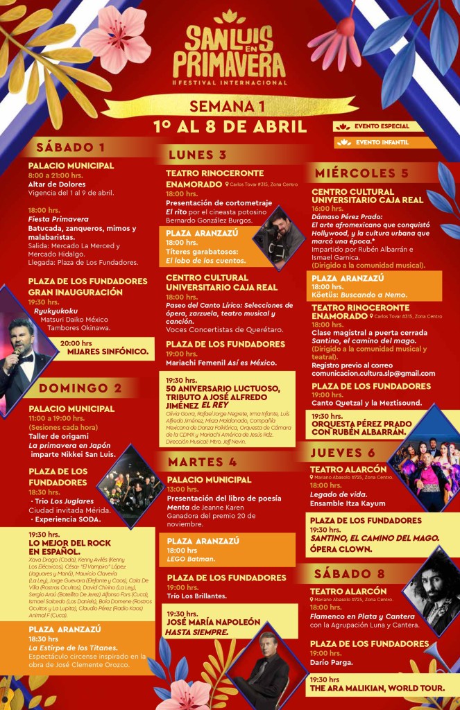 “Este Festival no sólo nos reúne, sino construye un San Luis Potosí distinto para accionar todas las palancas: la económica, la turística, la cultural, la artística y la deportiva. Además es una gran inversión en talento. Esto está dirigido a las familias potosinas, pero también del interior del Estado, así como de otras partes del país y del mundo. En esta ocasión, la nación invitada es Japón, por los vínculos estrechos que tienen con la Capital, y la ciudad invitada es Mérida, Yucatán, cuyas autoridades pidieron estar presentes en este evento”, precisó el Alcalde Enrique Galindo Ceballos.