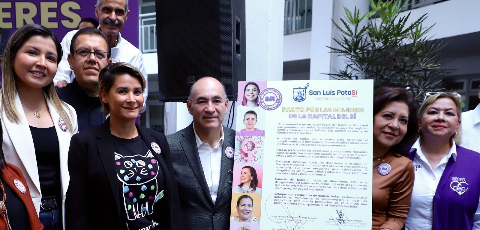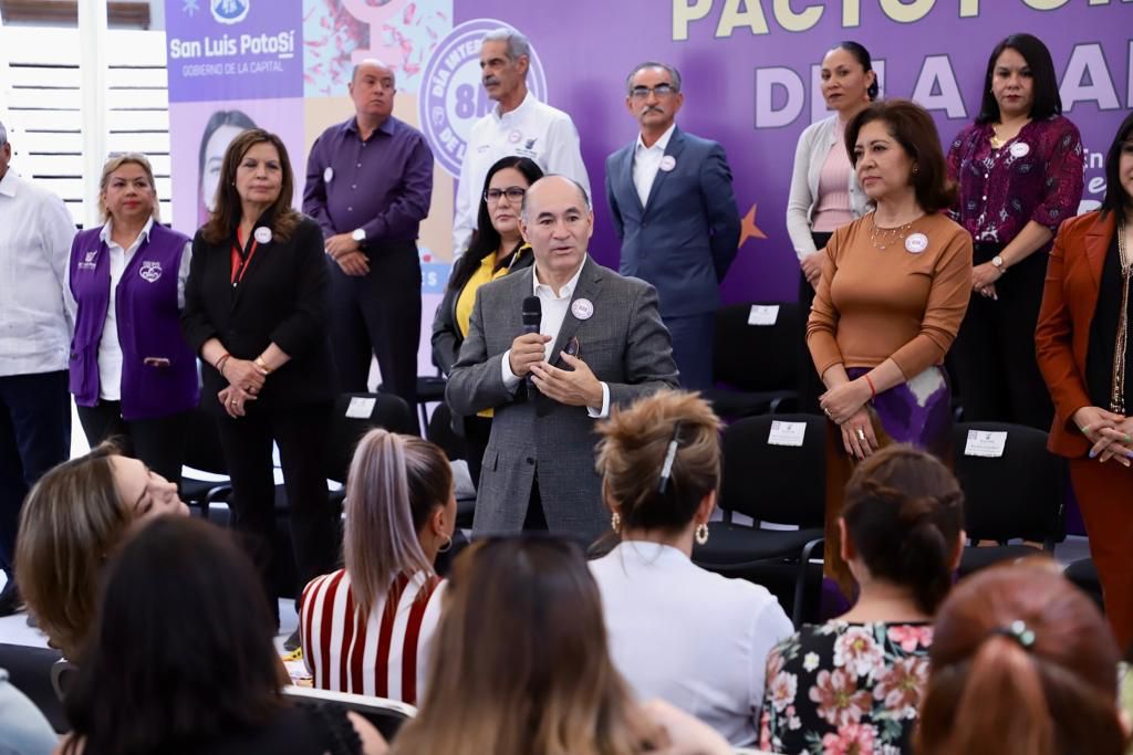 Al firmar el Pacto por las Mujeres de la Capital del Sí, el Presidente Municipal de San Luis Potosí, Enrique Galindo Ceballos, reafirmó que se continuará con la lucha para erradicar la violencia de género, “por lo que este convenio confirma que seguiremos dando batalla con esta política transversal, porque estamos para proteger a las niñas, adolescentes, jóvenes, adultas y adultas mayores”.