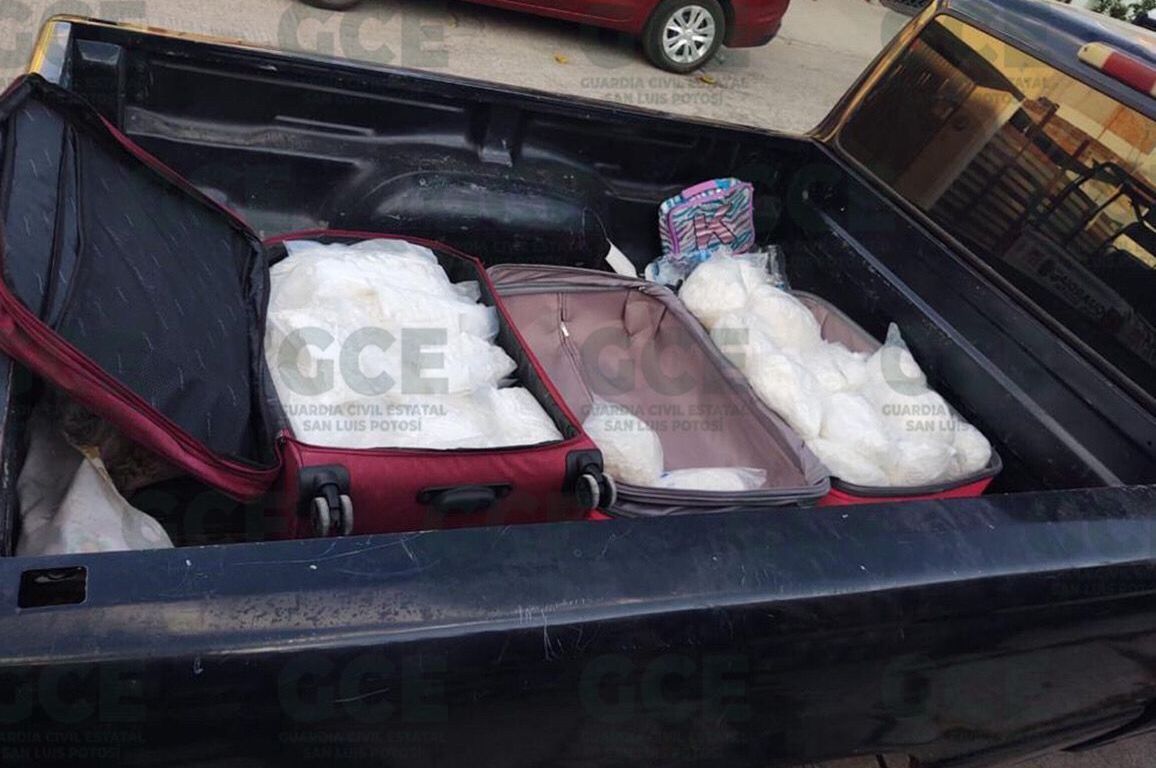 Se localizan en el interior de varias maletas más de 50 kilos de la metanfetamina cuyo valor en el mercado negro oscila por los 10 millones de pesos.