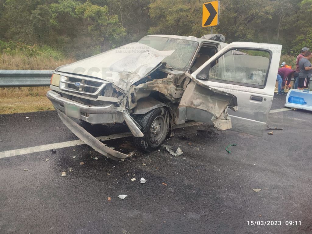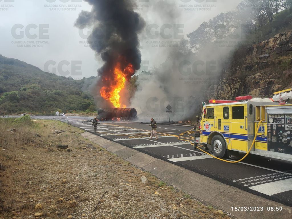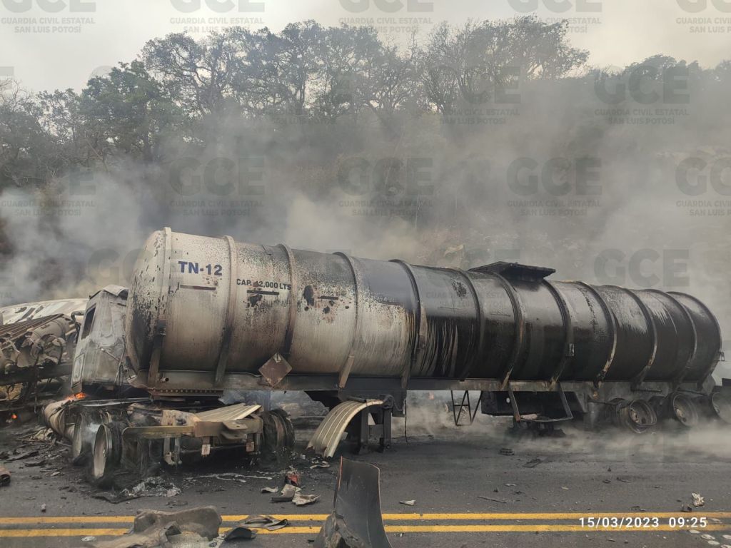Ante el reporte de un accidente ocurrido la mañana de este miércoles en la Súper Carretera Valles-Rayón, entre dos tractocamiones de caja seca y una pipa de combustible, la Guardia Civil Estatal (GCE) acudió al lugar para atender el hecho.