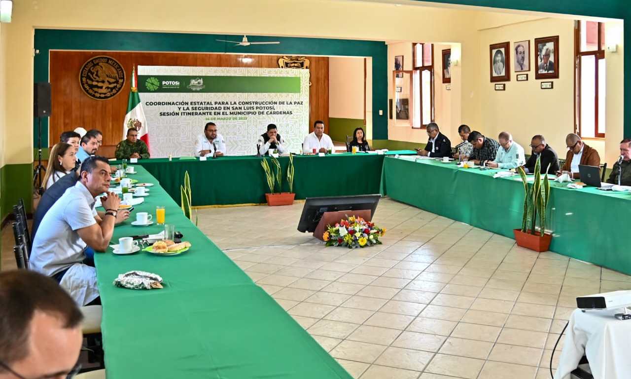 Para seguir generando las condiciones idóneas de seguridad pública, se requiere de la conjunción de esfuerzos entre los tres órdenes de Gobierno, pero al ser las y los presidentes municipales, el primer contacto con la ciudadanía tiene que haber mayores esfuerzos de su parte, mediante acciones preventivas y la profesionalización permanente de sus cuerpos de seguridad, sostuvo el Gobernador de San Luis potosí Ricardo Gallardo Cardona al encabezar la Mesa Regional de Coordinación para la Construcción de la Paz en Cárdenas.