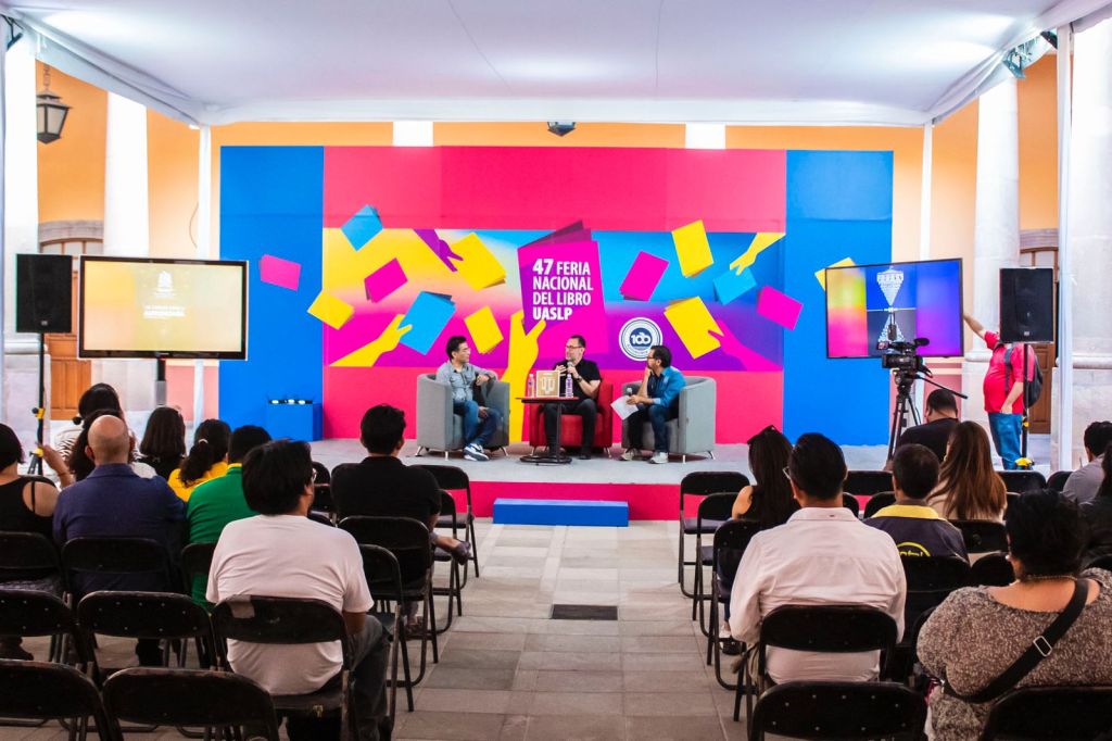 En el Patio de la Autonomía del Edificio Central y dentro de las actividades de la Feria Nacional del Libro UASLP, edición 47, el maestro Federico López Escalante y los diseñadores Octavio Alonso López y Luis Boix, relataron la historia de este proyecto que se empezó a plantear desde 2021, para celebrar el Centenario de la Autonomía.