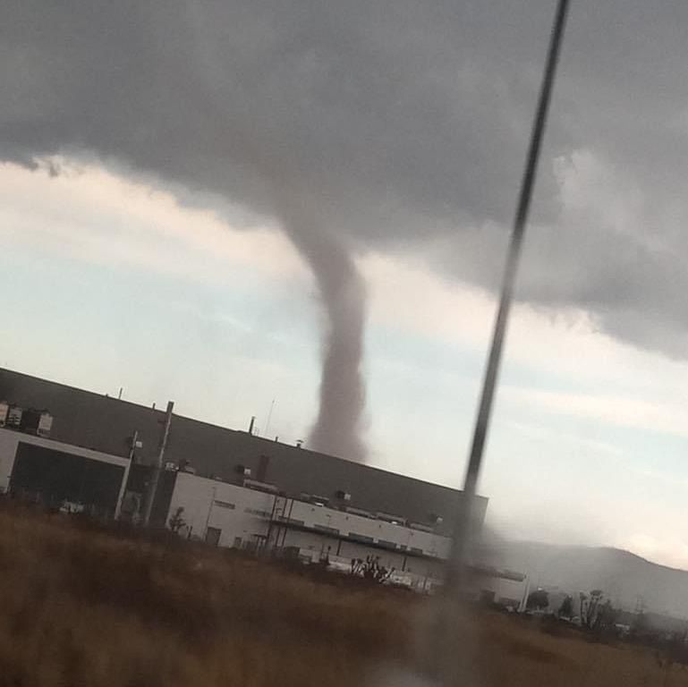 La Coordinación Estatal de Protección Civil informa que debido a que en días anteriores se tuvieron temperaturas de cálidas a calurosas y que este día el frente frío 39 trajo consigo una disminución en las temperaturas, provocó que se registrara un choque de aire frío y caliente, lo que propició la formación de un tornado categoría cero (según la escala Fujita quienes se encargan de medir la intensidad de los tornados).