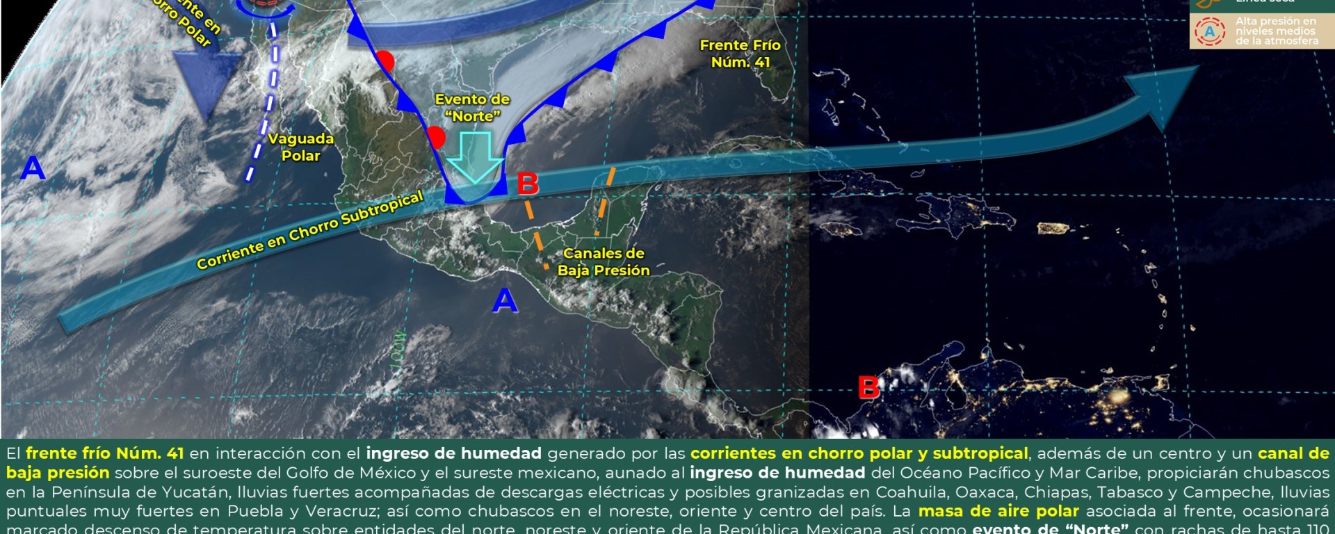 Evento de “Norte” con rachas de viento de 90 a 110 km/h: costas de Tamaulipas y Veracruz; con rachas de 50 a 70 km/h: costas de Tabasco, el Istmo y Golfo de Tehuantepec.